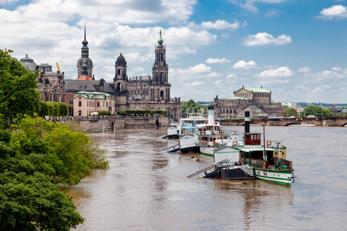 Auf acht Meter 76 stand der Pegel der Elbe in Dresden am 6. Juni. Damit war der Scheitel der Juni-Flut erreicht: Weniger als befürchtet und doch viel zu viel für Viele. Die Innenstadt wurde weitgehend vom Wasser verschont, die mobilen Flutwände zeigten ihre Wirkung. Andere Stadtteile soffen ab wie 2002, anderen Städten an der Elbe erging es ähnlich. Nahezu sieben Stunden stand das Wasser so hoch, nur langsam läuft das Wasser wieder ab.
